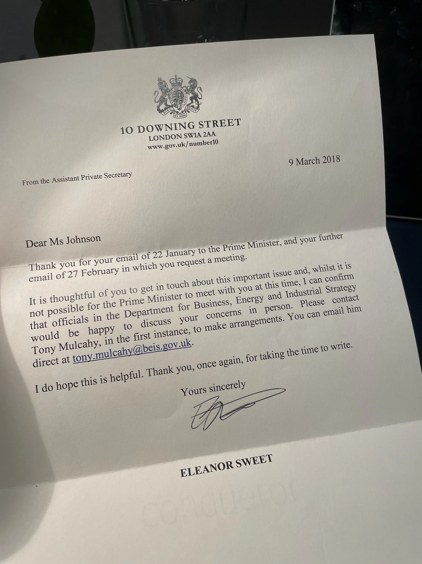 The second letter is a couple of years old now. I wrote to the prime minister to express my concern that not enough was being done by employers to help the millions of women who leave their careers. And when they step off the ladder to do something closer to home and less well-paid, the government claims this as a success because women are still in employment but it doesn’t account for the fact we rarely get back on it at any meaningful point.